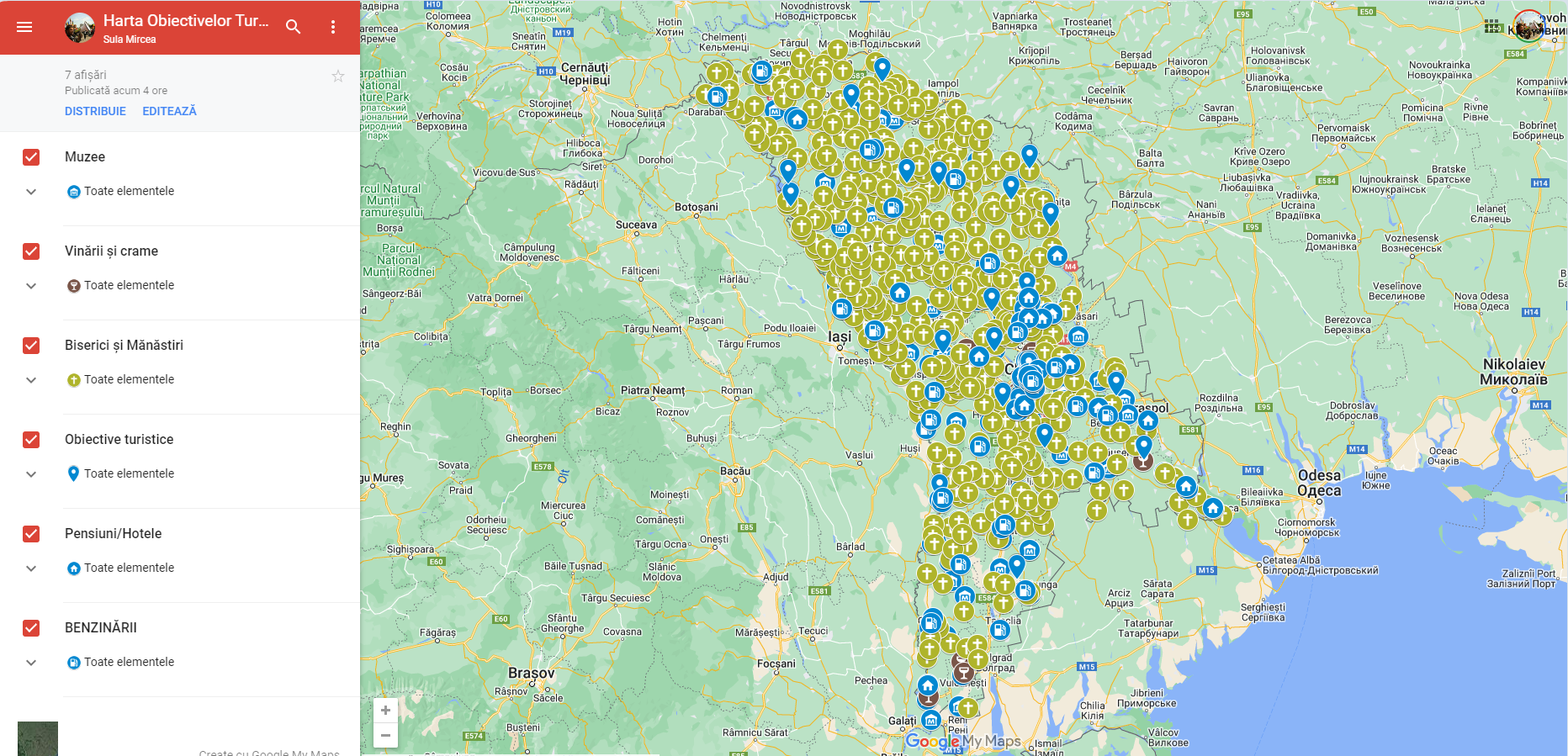 O caracteristică notabilă a acestei hărți este faptul că este în actualizare permanentă. Echipa din spatele proiectului se angajează să adauge constant noi destinații și informații, reflectând astfel schimbările și noutățile din sectorul turistic moldovenesc. Aceasta asigură că utilizatorii beneficiază mereu de cele mai recente informații, fiind ghidați cu precizie în călătoriile lor.